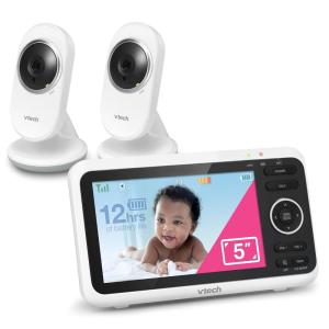 VTech VM928-2HD 5” 720p HD Display 2 Cameras Baby Monitor,110 Wide Angle View,Remote Pan-Tilt-Zoom,Night Vision,Up to 1000ft Range,Temperature Sensor,9 Soothing Sounds & Lullabies,2-Way Talk,No WiFi(3 Cameras)